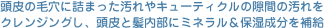 ●天然クレイとアミノ酸系洗浄成分が頭皮表面や髪表面の汚れをやさしく