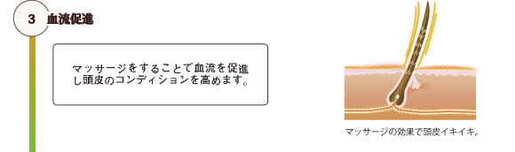 やさしい温感がリラクゼーションを高め、マッサージをすることで血流が促進され、頭皮のコンディションを高めます。